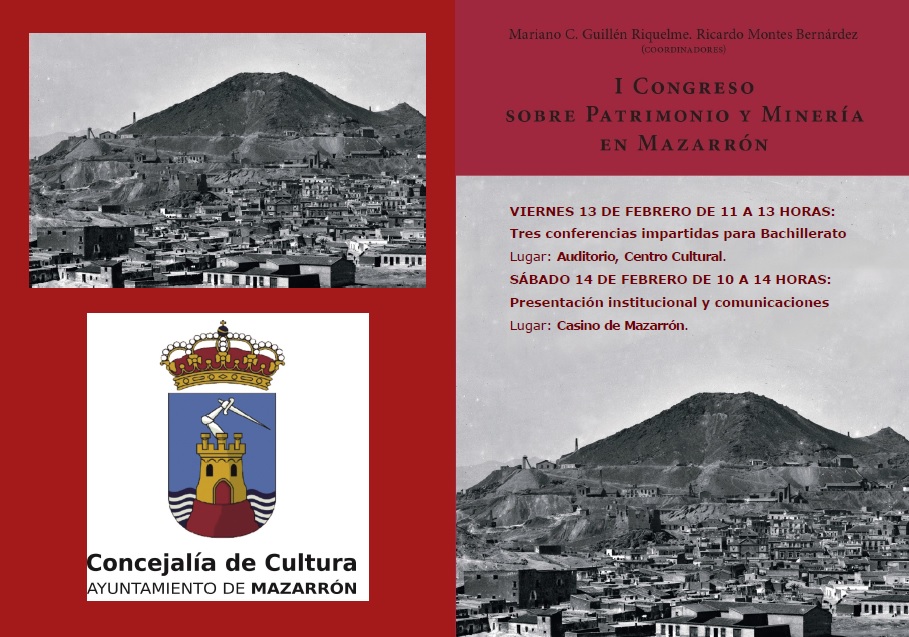 Próximo I Congreso sobre Patrimonio y Minería en Mazarrón, en el que participamos Manuela Caballero y yo con dos conferencias. Viernes 13, de febrero de 11 a 13 horas.