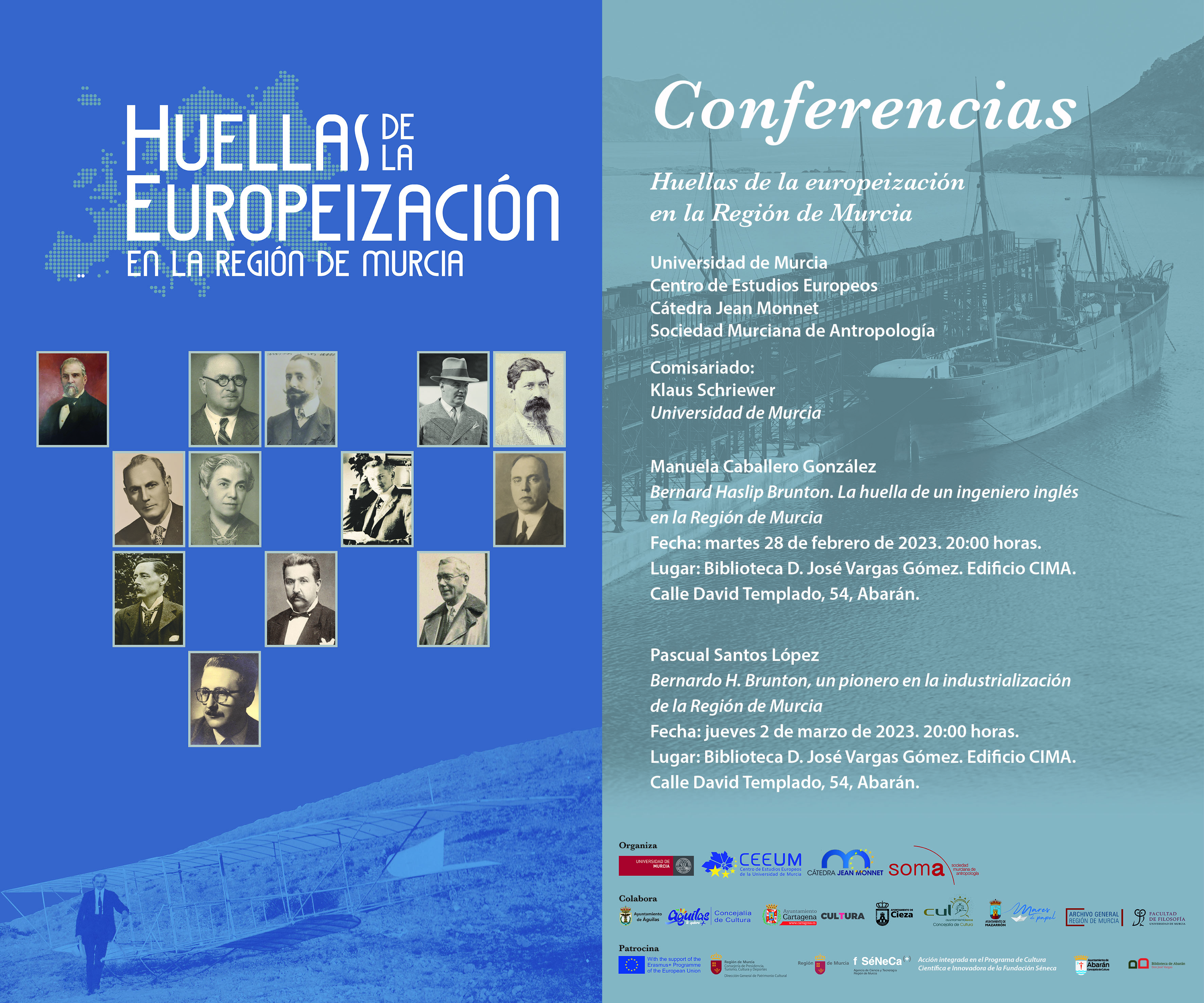 Recordemos que el ciclo consta de dos conferencias que se imparten con motivo de la exposición en Abarán del proyecto “Huellas de la europeización en la Región de Murcia”, que se puede ver en  la Biblioteca D. José Vargas Gómez, edificio CIMA de Abarán, hasta el 23 de marzo. La siguiente será mañana 1 de marzo, con el título “Bernardo H. Brunton, un pionero en la industrialización de la Región de Murcia”, que será impartida por mi a las 20,00 horas.