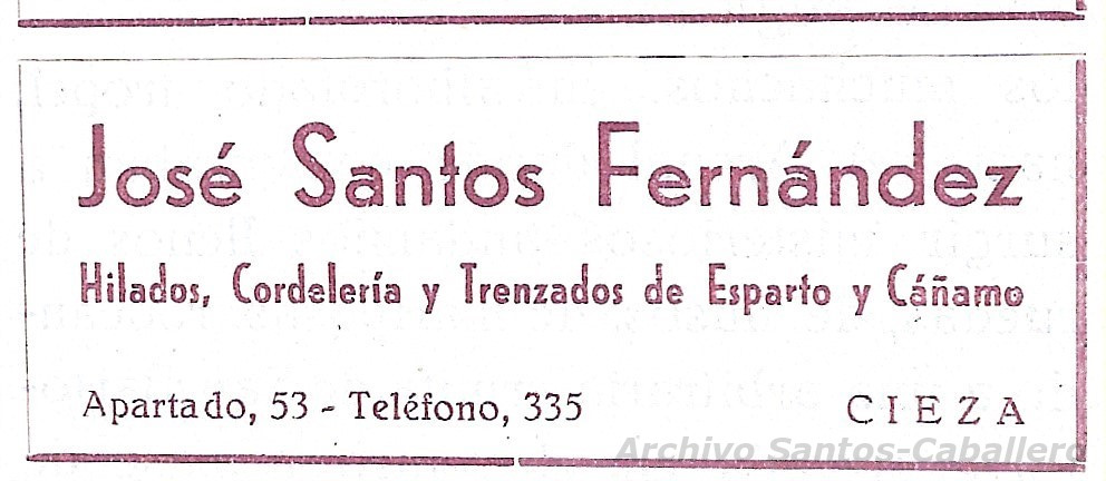 En 1955 se anunciaba con su nombre en la revista de la Feria y Fiestas de Cieza para producir hilados, cordelería y trenzados de esparto y cáñamo. Al año siguiente lo encontramos trabajando con tres ruedas de hilar esparto. Pero las sucesivas crisis del esparto hicieron que muchas grandes empresas no pudieran dar trabajo a sus hiladores y las pequeñas empresas de hilaturas también lo tenían muy difícil, por lo que había que renovarse y buscar nuevos mercados que dieran salida a la materia prima ciezana.