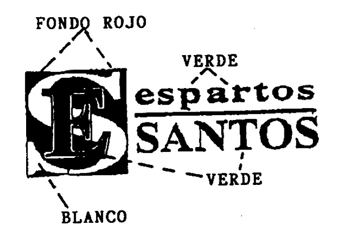 El 30 de junio de 1994 Juan Santos solicitaba registrar la marca Espartos Santos, para distinguir fibras de esparto y sisal para escayolas y cordelería. El diseño de la marca era una E y una S entrelazadas, en colores blanco, verde y fondo rojo y la leyenda Espartos Santos. Marca que le concedían el 20 de octubre de 1995.