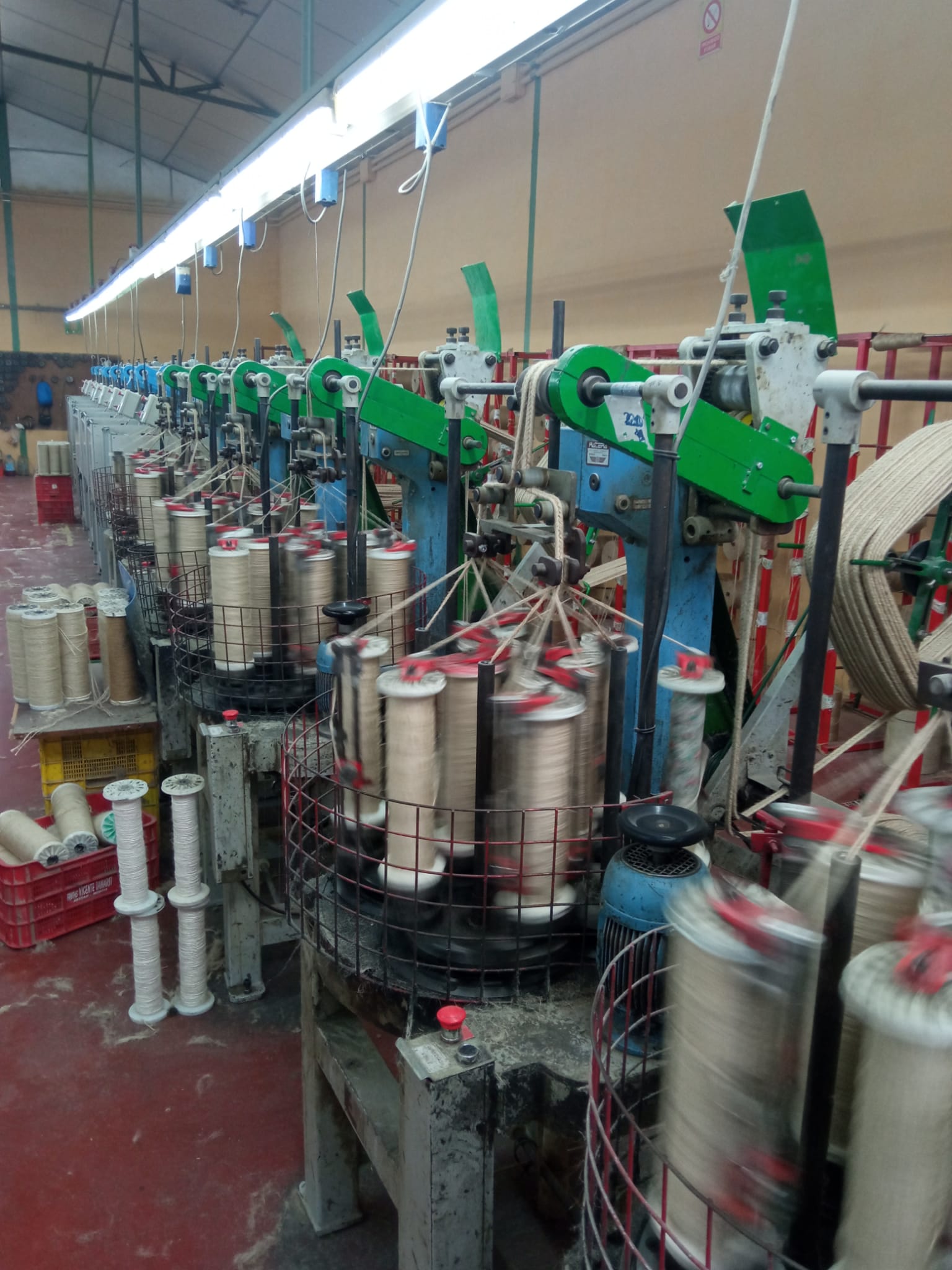 Figura 5: Línea de trenzadoras de yute en la actualidad. Cortesía de David Santos Saorín
