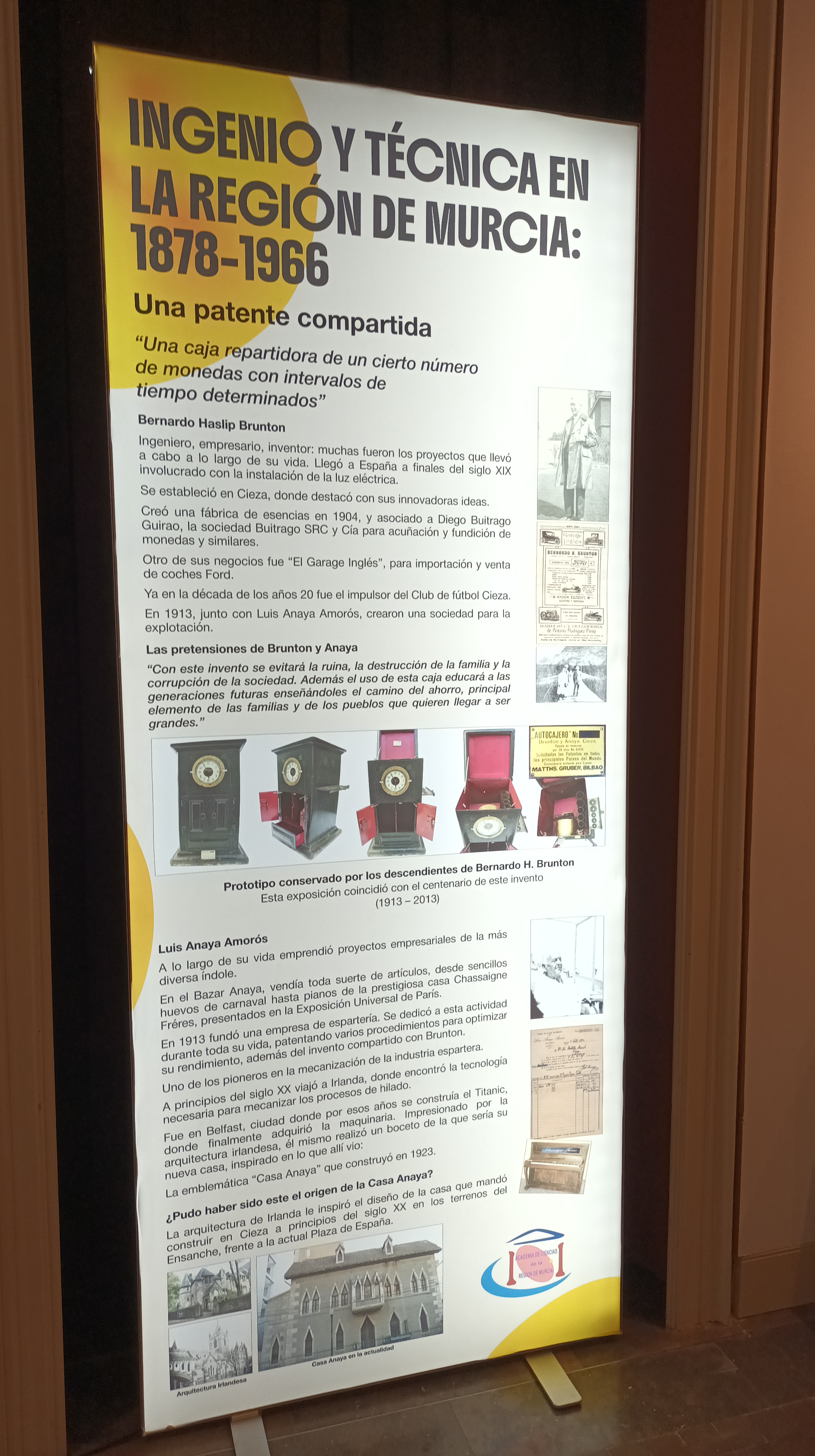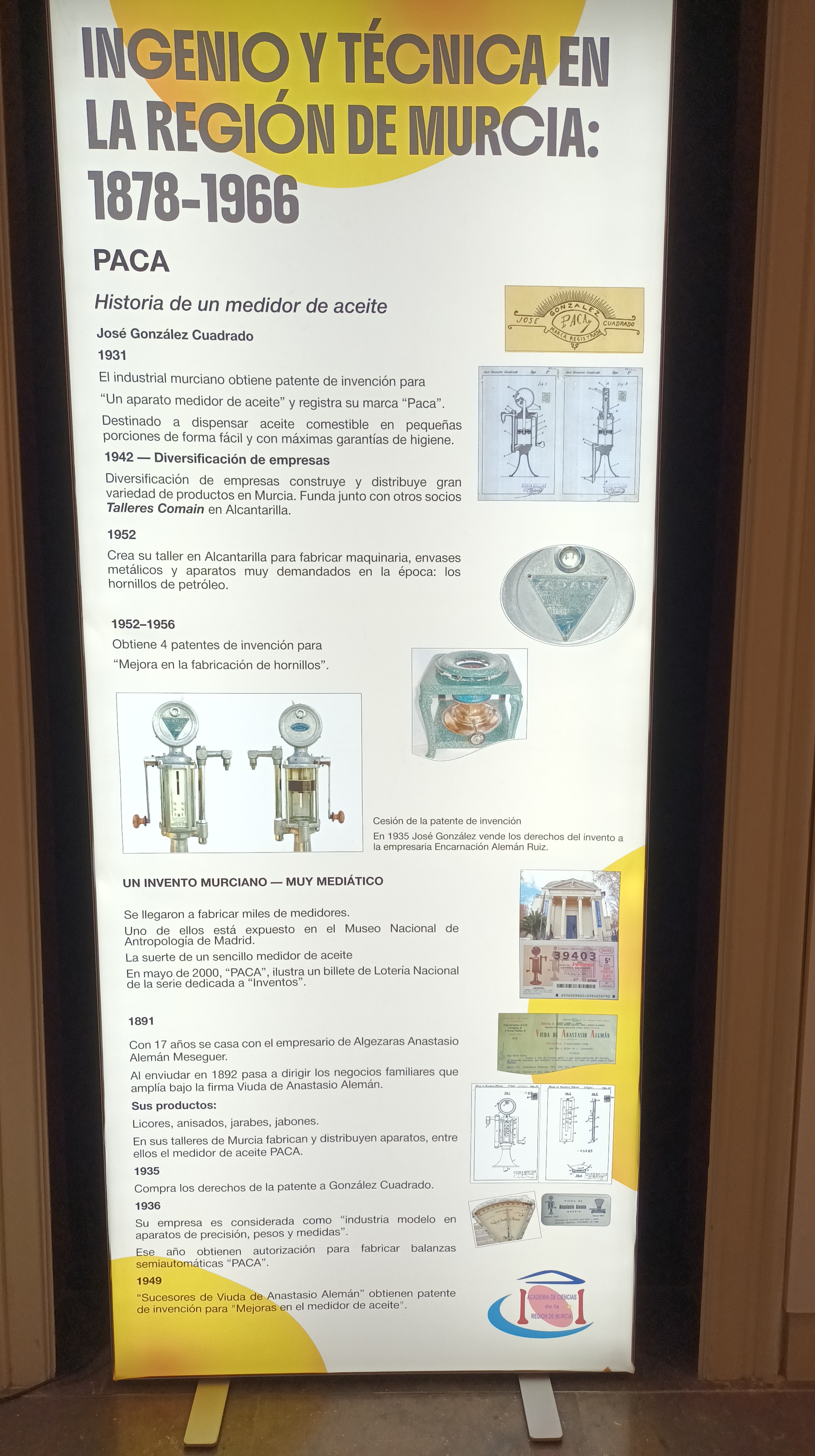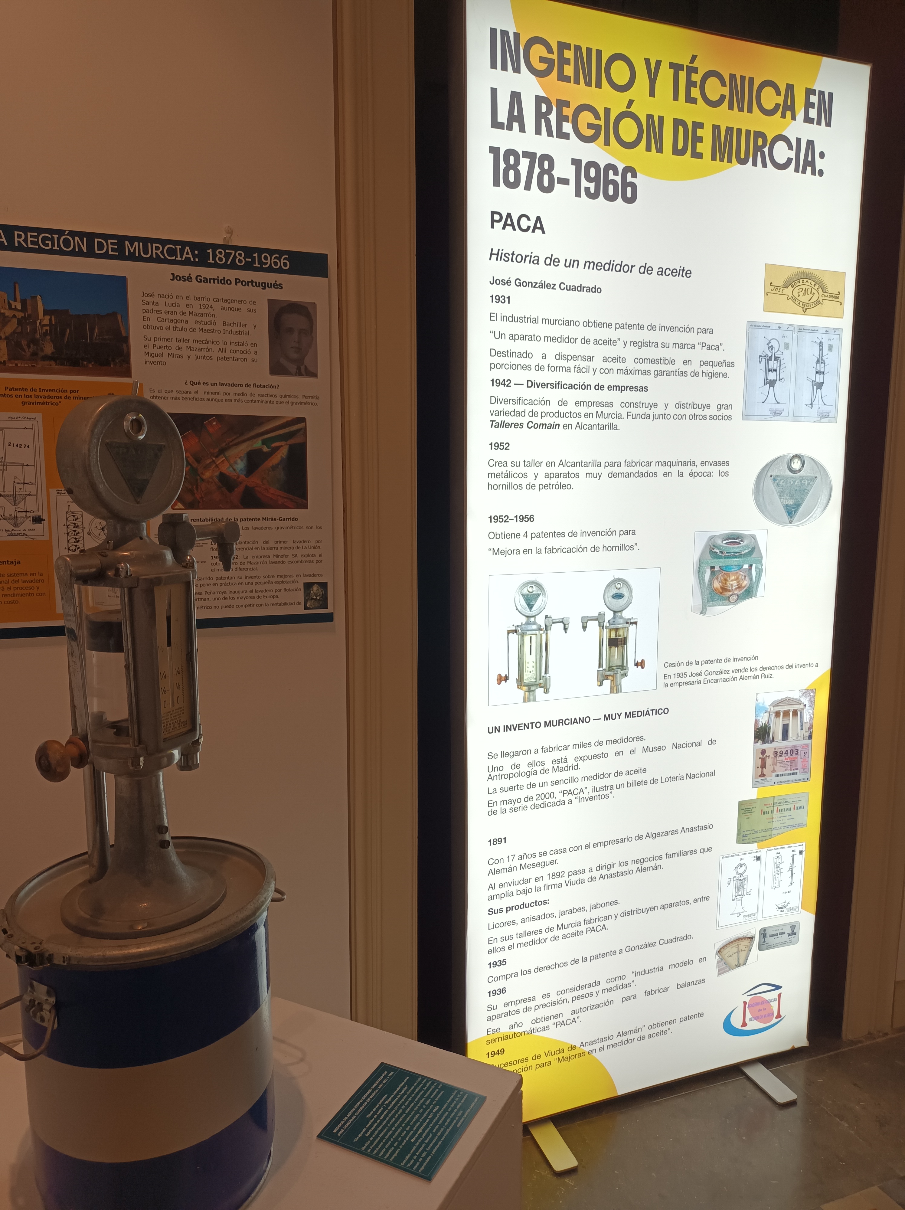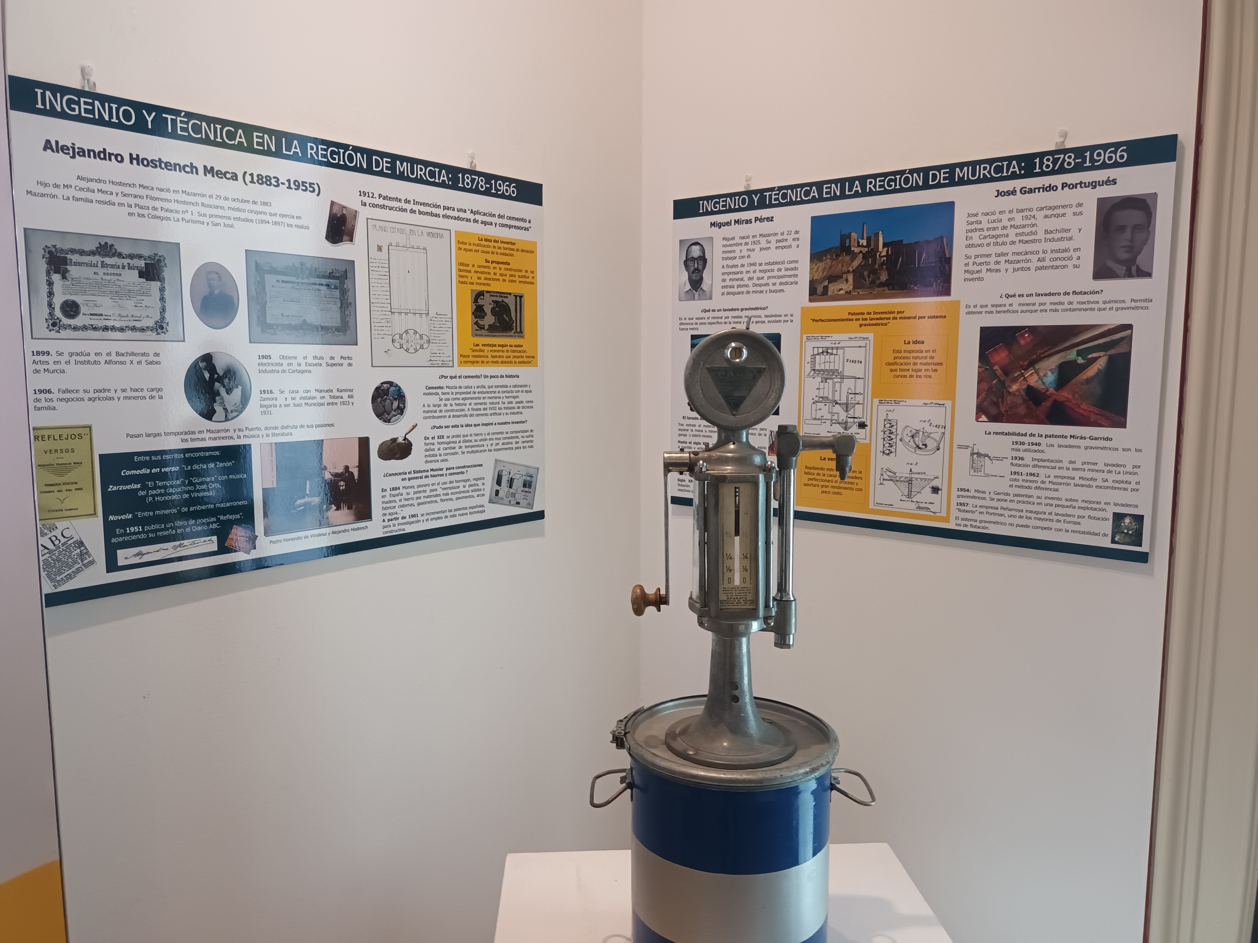 La exposición forma parte del proyecto, Ingenio y Técnica en la Región de Murcia 1878-1966, en el que los comisarios, Pascual Santos y Manuela Caballero, trabajan desde hace 22 años para investigar, recuperar y difundir nuestro patrimonio industrial, científico y tecnológico. La muestra cuenta con tres conferencias asociadas: la primera, impartida por el profesor de Historia de la Ciencia de la Universidad de Murcia, Carlos López Fernández, se titula: Origen de los estudios científicos universitarios en Murcia; la segunda: Mujeres inventoras a pesar de Voltaire, de Manuela Caballero González y la tercera: Inventores y Patentes de Química, Física y Matemáticas en la Región de Murcia, de Pascual Santos López. Los tres conferenciantes pertenecen al Grupo de Investigación de Historia de la Ciencia, Documentación Médica y Promoción de la Salud de la Facultad de Medicina de la Universidad de Murcia y son miembros de la Sociedad Española de Historia de las Ciencias y de las Técnicas.