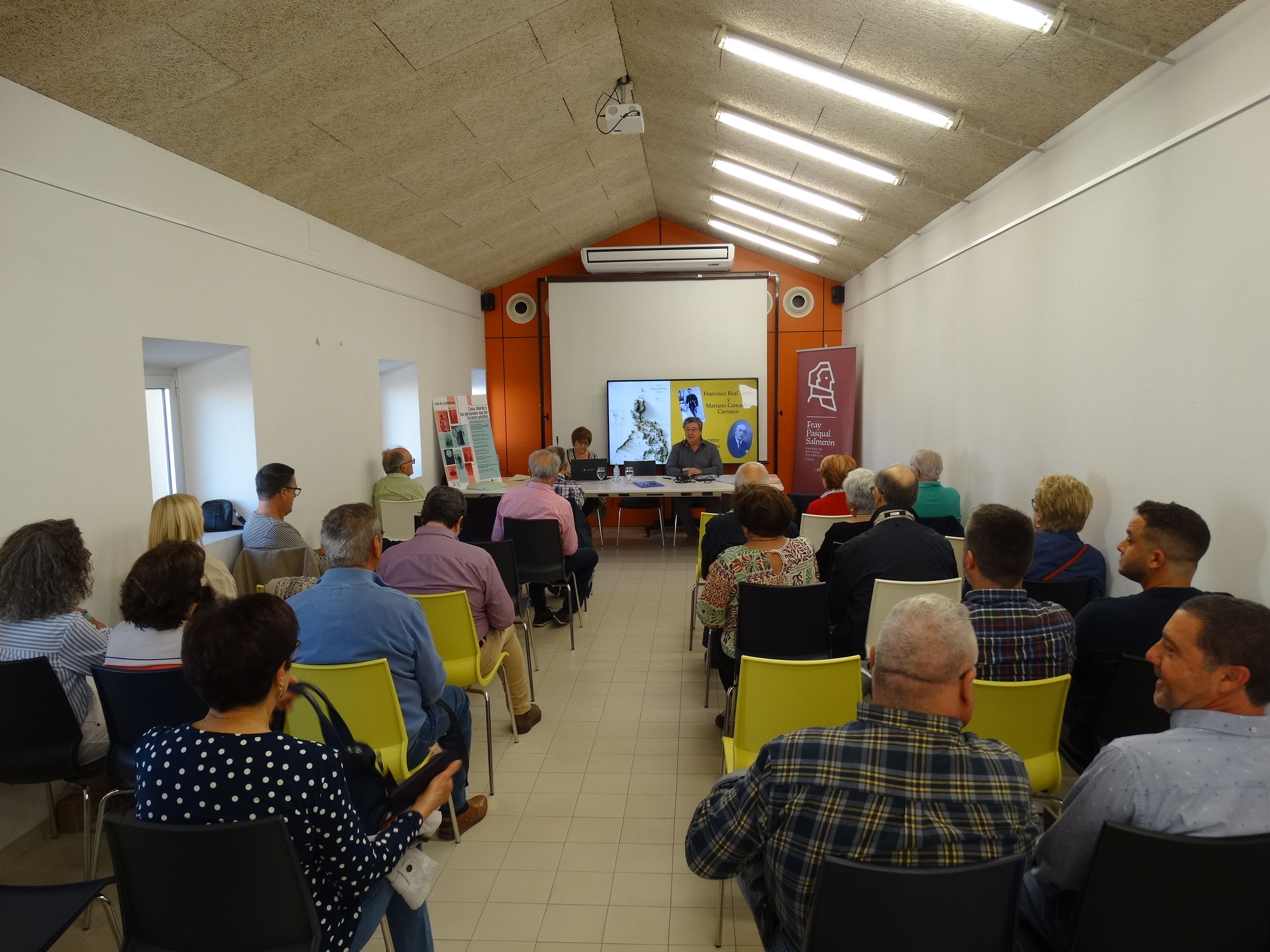 Manuela Caballero fue presentada por el presidente del Centro de Estudios Históricos Fray Pasqual Salmerón, Francisco Javier Salmerón Giménez, que habló sobre las relaciones hispano-filipinas y repasó el currículum de la investigadora y alguna de sus numerosas publicaciones como el artículo sobre el ingeniero Alfonso Brunet, que construyó la primera fábrica de esparto de Cieza en 1867 y que todavía se conserva junto al Cauce.