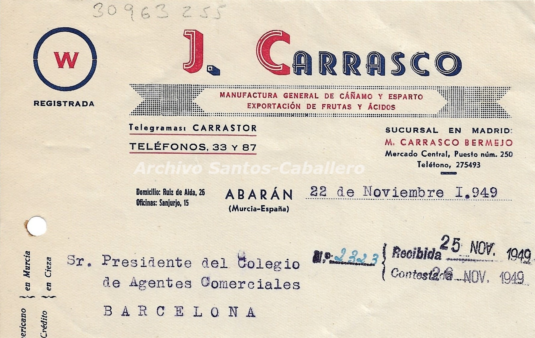En las siguientes patentes que registra ya figura como domiciliado en Almería y su temática está relacionada con sus nuevos negocios. La primera data de 1927 y consiste en “Un procedimiento para el saneamiento y desinfección del serrín de corcho y el molido”. En 1933 obtendría patente de invención para su “Perfeccionamientos en la fabricación de molinos de piedra”. En 1946 solicitaría otras dos más.