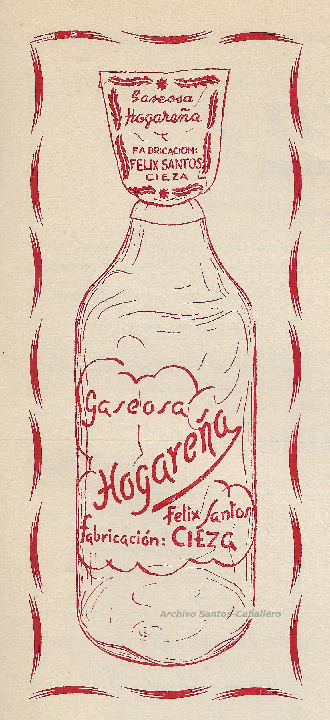 A mediados de los cincuenta amplió el negocio con la fabricación de gaseosas, con la marca HOGAREÑA. Los envases de gaseosa eran de dos tamaños: un litro con tapón de porcelana y un cuarto de litro con tapón corona. Las pequeñas tenían sabor a naranja o limón, siendo producidas por Félix añadiendo la esencia “Orange”, que adquiría de la casa Dallan de Badalona, cuyo viajante José cobró tal amistad con la familia que se quedaba a dormir en su casa. La sacarina empleada en la gaseosa de litro era de la sociedad Morató y Cía. de Barcelona y la maquinaria de la fábrica de gaseosas era de la empresa Instalaciones y Suministros Industriales González y Maíllo de Valladolid.