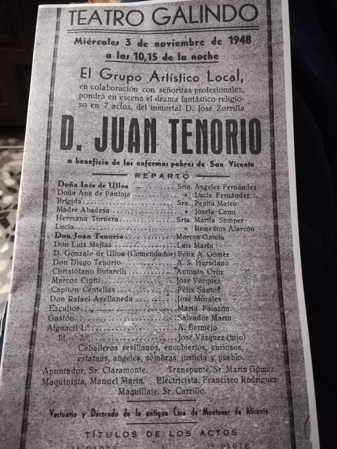 Figura 5.- Reparto de la obra Don Juan Tenorio en 1948. Archivo familiar